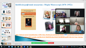 Широкій освітянській і науковій громаді доповідачі від авторського колективу у своїх виступах, що супроводжували відеопрезентації (Енциклопедичний біографічний словник. Фейсбук ДНПБ, фейсбук відділу. Марія Монтессорі (1870–1952). Фейсбук ДНПБ, фейсбук відділу. Василь Сухомлинський і його кореспонденти: епістолярна спадщина на тлі доби : наук.-попул. довід. Фейсбук ДНПБ, фейсбук відділу), коротко охарактеризували підготовлену довідкову продукцію та електронний ресурс: