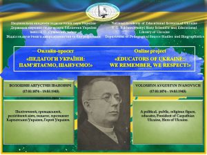Інформацію про життя та діяльність А.І. Волошина представлено на сторінці «Волошин Августин Іванович» електронного інформаційно-бібліографічного ресурсу ДНПБ «Педагоги України та світу», у довідковому виданні «Педагоги України (друга половина ХІХ – початок ХХІ ст.): енциклопедичний біографічний словник» (наук. ред. Березівська Л. Д., 2025. https://lib.iitta.gov.ua/id/eprint/745951/. Усіх зацікавлених запрошуємо до ознайомлення.
