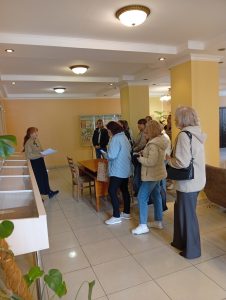 Головний бібліограф відділу зберігання фонду, обслуговування користувачів та соціокультурної діяльності ДНПБ Алла РУБАН провела для студентів оглядову екскурсію бібліотекою, висвітлила основні етапи її становлення та розвитку, ознайомила майбутніх вихователів та управлінців із музейною експозицією. Учасники заходу відвідали кімнату-музей рідкісної книги, читальні зали Фонду В. О. Сухомлинського та дисертацій, де отримали уявлення про склад і цінність бібліотечних фондів. Головний бібліотекар цього ж відділу Людмила МЕЛЕЩЕНКО ознайомила студентів із можливостями електронного каталогу ДНПБ та онлайн послугами.