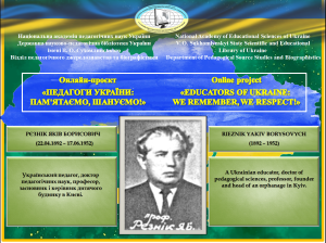 22 квітня виповнюється 134 роки від дня народження Якова Борисовича Рєзніка – українського педагога, доктора педагогічних наук, професора, засновника і керівника дитячого будинку в Києві.