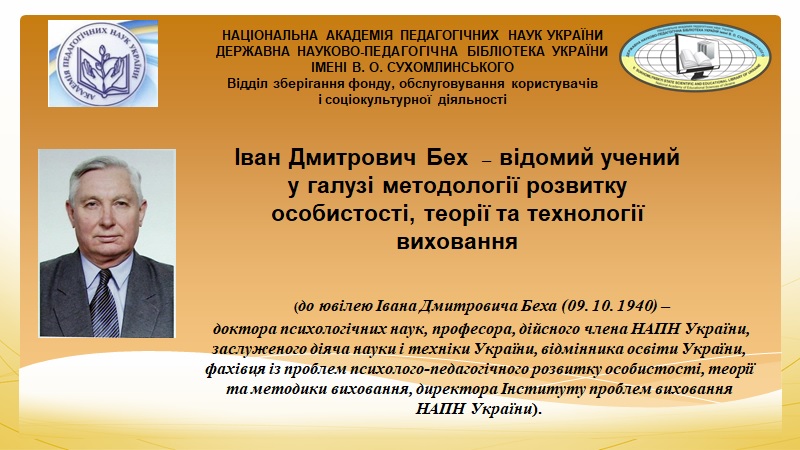 імені В. О. Сухомлинського НАПН України прагне створити сучасний науково-освітній та культурний простір, що сприятиме якісному забезпеченню Ваших інформаційних потреб.