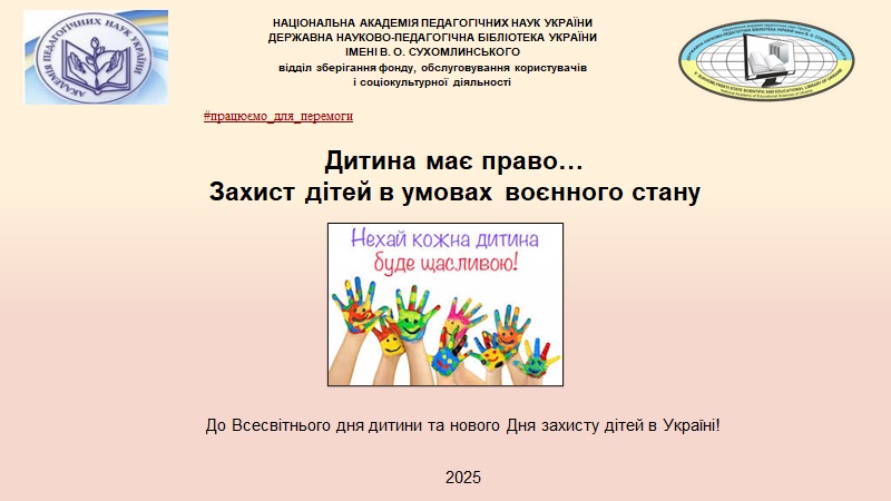 Державна науково-педагогічна бібліотека України імені В. О. Сухомлинського оголошує конкурс на заміщення вакантних посад Детальніше...