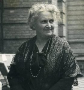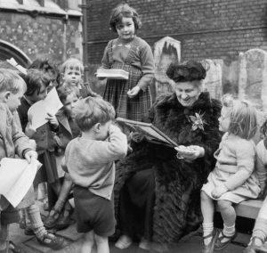 ![]() Марія Монтессорі в лондонській школі. 1951 р. Світлина: https://amartyamontessori.com/thekindergarten.html |