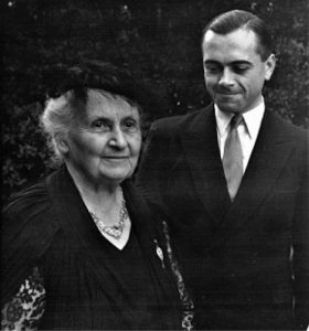 ![]() Марія Монтессорі з онуком Маріо Монтессорі-молодшим Світлина: https://www.imontesomething.com/blog/The-Life-Of-Mario-Montessori.php |