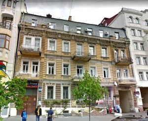 ![]() У цьому будинку в Києві, що на вул. Богдана Хмельницького, 50, бл. 1910 – 1912 рр. у квартирі № 9 проживав В. К. Прокопович |
