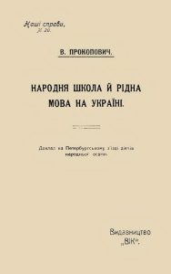 ![]() 1917–1919 у цьому будинку (Київ, бул. Т. Шевченка, 14) містилися генеральне секретарство освіти УЦР, Міністерства народної освіти УНР і Української Держави, які очолювали в різний час видатні діячі культури і науки. В лютому – квітні 1918 р. міністром освіти був В. Прокопович |