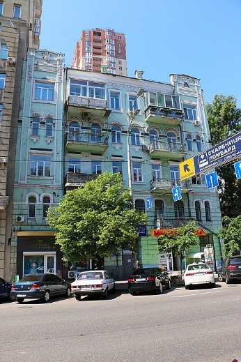 ![]() У цьому будинку в Києві, що на вул. Богдана Хмельницького, 50, бл. 1910 – 1912 рр. у квартирі № 9 проживав В. К. Прокопович |