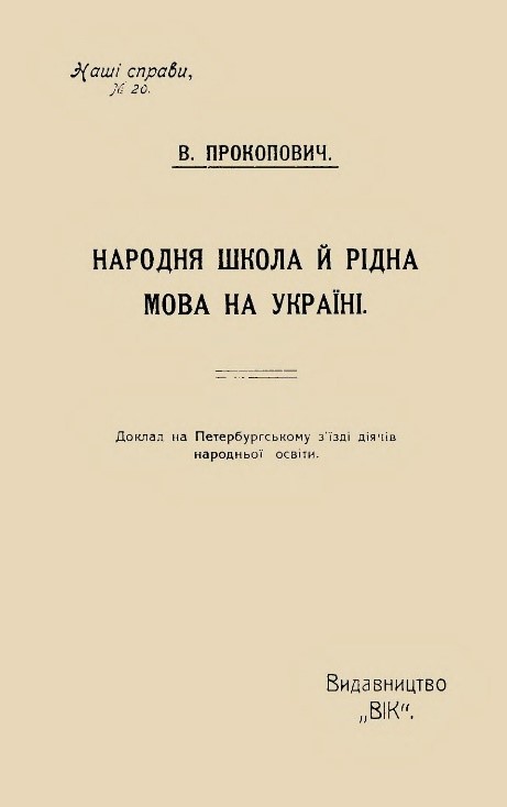 ![]() 1917–1919 у цьому будинку (Київ, бул. Т. Шевченка, 14) містилися генеральне секретарство освіти УЦР, Міністерства народної освіти УНР і Української Держави, які очолювали в різний час видатні діячі культури і науки. В лютому – квітні 1918 р. міністром освіти був В. Прокопович |