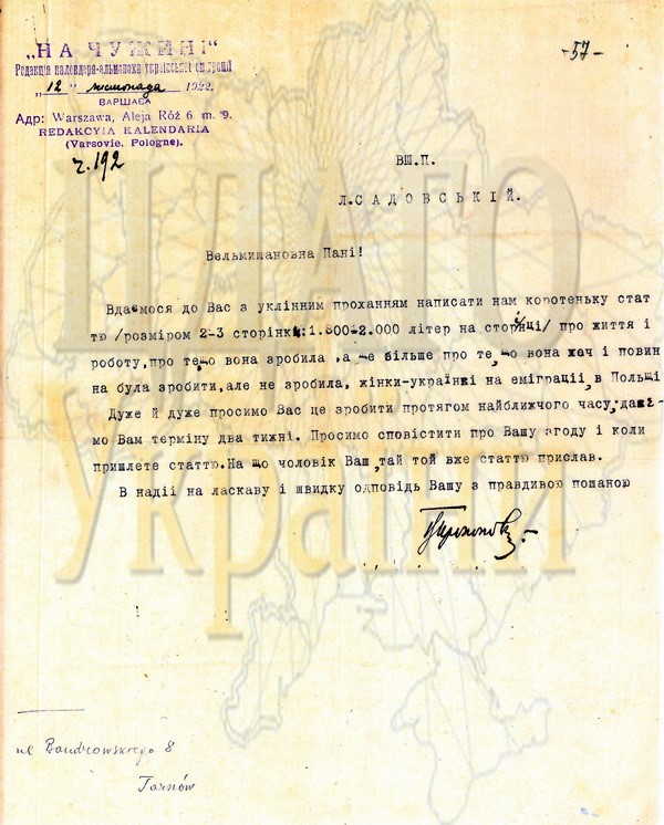 | Листи В. Прокоповича до Л. Садовської та Ф. Слюсаренка від 12 листопада 1922 р. та 2 грудня 1927 р. ЦДАГО України, ф. 269, оп. 2, спр. 194, арк. 57; спр. 235, арк 2 Світлини: https://tsdahou.archives.gov.ua/arhiv-vystavkovyh-proyektiv/vystavkovi-proyekty-czdago-ukrayiny/__trashed-2__trashed/# |