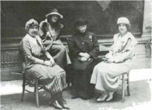 ![]() Українська делегація на Міжнародному Жіночому Конгресі у Римі (1923 р.). Зліва направо : П. Ю. Зеленевська, Млада Липовецька, С. Русова, Н. Кукулинська-Онацька. |