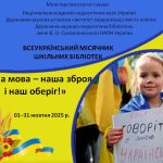 Запрошуємо бібліотекарів закладів загальної середньої освіти взяти участь у Всеукраїнському місячнику шкільних бібліотек «РІДНА МОВА – НАША ЗБРОЯ І НАШ ОБЕРІГ», що проходитиме 1–31 жовтня 2025 р. у рамках Міжнародного місячника шкільних бібліотек. Для здійснення науково-методичного супроводу організації та проведення місячника фахівцями Державної науково-педагогічної бібліотеки України імені В. О. Сухомлинського НАПН України та Державної наукової установи «Інститут модернізації змісту освіти» підготовлено методичні рекомендації та рекомендаційний бібліографічний список.